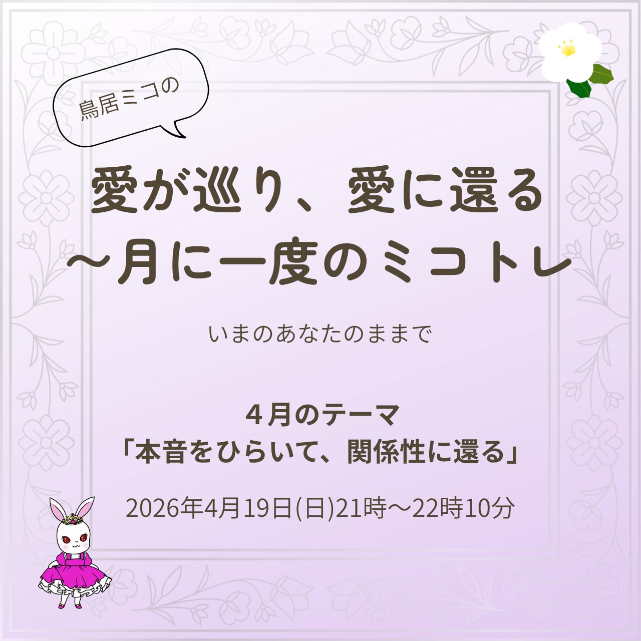 愛が巡り、愛に還る〜月に一度のミコトレ(4月期:4/19(日)21時)